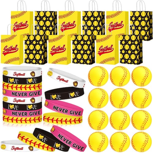 - Design atraente: estas lembranças de festa de aniversário de softbol adotam vários elementos de softball, as bolsas são impressas com cores temáticas de softball, como vermelho, preto e amarelo; A pulseira é impressa com um slogan motivacional, e o softbol é bonito e atraente