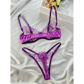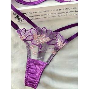 Conjunto de Lingerie Floral Transparente Sexy ElaShopp - Roxo - M