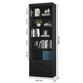 O ambiente é composto por (L x A x P): 1x Estante Livreiro Multiuso 1404: 61 x 183 x 35 cm 1x Estante Livreiro com 2 Gavetas 3420: 61,6 x 183 x 35,4 cm 1x Armário Multiuso 2 Portas 879: 61 x 183 x 35,4 cm