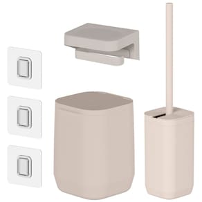 Conjunto de Lixeira com Escova Sanitária e Porta Papel Higiênico Aura Bege - Ou