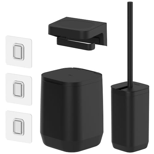Conjunto de Lixeira com Escova Sanitária e Porta Papel Higiênico Aura Preto - Ou
