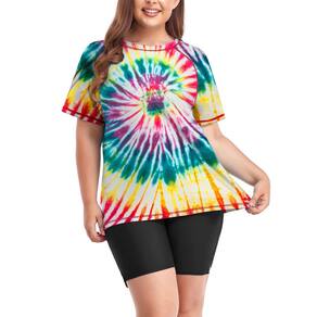 Conjunto feminino plus size Rash Guard de manga curta com shorts de surfe FPS 50+