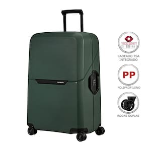 - Marca: Samsonite - Modelo: Magnum Eco - Malas em Polipropileno, material de alta qualidade. - Cadeado TSA acoplado. - Rodas Duplas com Giro 360º - Capacidade mala pequena de 38L - Sistema de travamento de 3 pontos - Fecho sem zíper - Alça de transporte superior - Divisória interna de várias alturas - Peso leve - Interior removível - Rodas silenciosas - Bolso interno - Etiqueta de identificação
