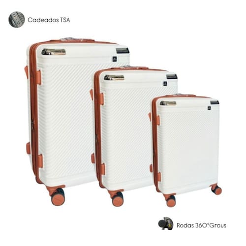 CONJUNTO DE 3 MALAS ABS 10KGS + 23KGS + 32KGS NOVA LINHA MATERIAL POLICARBORNATO. Características:
