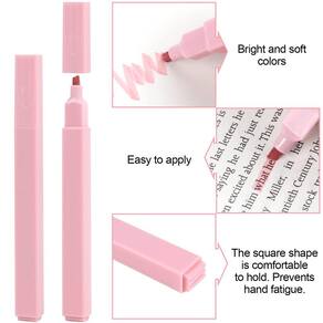 Nível de conforto: A cor da aparência dos marcadores estéticos é muito quente, brilhante e macia. O iluminador pastel esteticamente agradável é confortável de segurar e evita a fadiga das mãos, garantindo que as mãos não se cansem durante o uso.