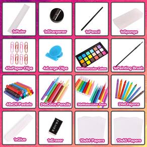 Alloytop 226 peças de lápis de cor para arte e artesanato, kit de material escolar, desenho, esboço, colorir, adolescentes, meninas, crianças, 6, 7, 8, 9, 10, 11, 12 anos, com giz de cera pastéis a óleo - Ferramentas de arte abrangentes: Inclui uma ampla variedade de ferramentas de desenho e coloração, como aquarelas, lápis de cor, marcadores e papel de desenho, permitindo que as crianças experimentem uma variedade de métodos inovadores em um kit - Organizador portátil: todas as ferramentas são cuidadosamente colocadas em uma caixa dobrável para facilitar o transporte e armazenamento, perfeita para uso doméstico ou em movimento - Materiais de alta qualidade: o uso de tintas e pincéis de alta qualidade garante que as obras de arte das crianças sejam coloridas e duradouras, sem serem facilmente danificadas - Estimular a criatividade: incentive as crianças a usarem sua imaginação e criatividade para se expressarem através do desenho e da coloração, e para desenvolver talentos artísticos - Adequado para todas as idades: adequado para crianças de todas as idades, de iniciantes a avançados, todos serão capazes de encontrar as ferramentas certas para o seu nível neste kit