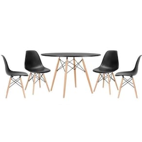 Conjunto de Mesa 100 cm com 4 cadeiras Eames NEW - Preto