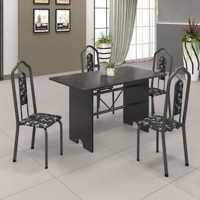 Quer deixar sua casa completa com um toque especial? Uma dica bacana de como transformar sua cozinha, deixando-a mais receptiva e bonita? Então você precisa de móveis indispensáveis para deixar seu lar muito mais aconchegante, receptivo e sempre disponível para receber a visita de amigos, familiares e convidados. Você vai se apaixonar por este incrível Conjunto de Mesa com 4 Cadeiras Bianca. Ideal para cozinha, ele é a melhor opção para completar o espaço. Aproveite!! Medida da Mesa (A x L x P): 75x75x120cm Peso da Mesa: 3,68 kg Mesa suporta até: 10.0000 Acabamento da Cadeira/Banco: Pintura Texturizada Acabamento da Mesa: Acetinado Almofada do assento: Fixa Ambiente Principal: Cozinha Cadeira/Banco estofada: Sim Cadeira/Banco suporta até: 120.0000 codigo_ean: 7909903224731 Complexidade da Montagem: Média: pode ser montado por mais de uma pessoa e/ou necessite de maior conhecimento para montagem Cor: Martelado Prata/Ardósia Indiano/Preto Floral Cor do Produto: Martelado Prata/Ardósia Indiano/Preto Floral Enchimento do Assento: Espuma D-16 Escala de Brilho: Fosco Espessura do Tampo: 15 mm Estrutura do Assento: MDP Itens Inclusos: 1 Mesa, 4 Cadeiras, Kit Ferragens e Manual de Montagem Manual de Montagem e Instalação: https://product-hub-prd.madeiramadeira.com.br/821634/documents/4ea672eb-6a97-46c2-9a24-a6780858f7ad1147880ilovepdfmerged22.pdf Material da Base da Mesa: Granito Material da Estrutura da Cadeira: Aço Material do Tampo: Granito Medida da Cadeira/Banco (A x L x P): 108x37x40cm Medida do Tampo (L x C x E): 120x75x1,5cm Necessita Montagem: Sim Origem do Produto: Nacional Peso: 82.7400 Possui Rodízio: Não Quantidade de Lugares: 04 Revestimento da Cadeira/Banco: Couro Ecológico Sistema de Montagem: Parafusos Ean: 7909903224731