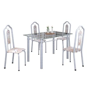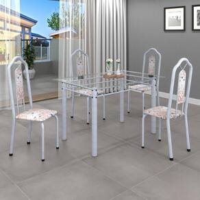 Conjunto de Mesa 120x75cm Tampo Vidro com 4 Cadeiras Bianca Soma Móveis Botanic Bege/Mart Pérola/Vidro Incolor - Branco