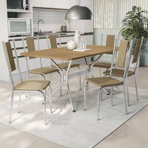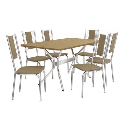Conjunto de mesa 1,60m 6 cadeiras cromadas - Bege Médio