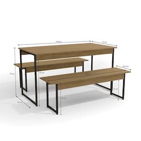 Conjunto Mesa 1,36x0,72m com 2 Bancos 1,36x0,35m Estilo Industrial LI013 Kappesberg