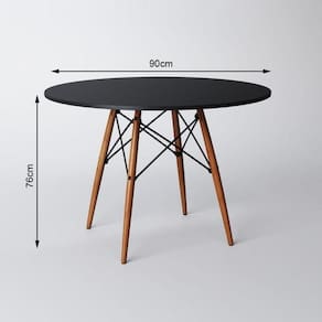 Conjunto De Mesa 4 Cadeiras Pretas Eames Eiffel 90cm Base Madeira Tampo Preto Conjunto de Mesa 4 Cadeiras Pretas Eames Eiffel 90cm Base Madeira Tampo PretoNo quesito decoração o Jogo de Mesa 4 Cadeiras Eiffel se destaca pelo design moderno e sofisticado. A Cadeira Eiffel é confeccionada em policarbonato, sua base é em Madeira maciça, o que confere total resistência e conforto, o tampo é confeccionado em MDF com pintura impermeável garantindo melhor durabilidade ao produto, sua base é em Madeira maciça. O Jogo de Mesa 4 Cadeiras Eiffel da vida ao ambiente além de combinar com todos os tipos e cores de móveis.Dimensões:Cadeira:Altura: 80,5cmLargura: 46,5cmProfundidade: 42cmAssento x Chão: 46cmContém: 4 cadeirasPeso máximo suportado: 120kgMesa:Altura: 73cmDiâmetro: 90cmObs: Imagens Meramente Ilustrativas
