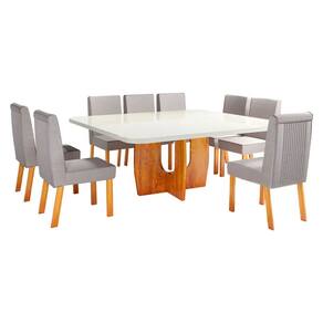 Marca: Bom Pastor Modelo: Mesa: Luxury | Cadeira: Isla Tipo: Conjunto de mesa Quantidade de lugares: 8 lugares Material da estrutura da mesa: MDF Material do tampo: MDF e Vidro Material da estrutura da cadeira: MDF Revestimento da cadeira: Linho Assento estofado: Sim Encosto estofado: Sim Altura: Mesa: 80 cm | Cadeira: 97 cm Largura: Mesa: 135 cm | Cadeira: 47 cm Profundidade: Mesa: 135 cm | Cadeira: 66 cm Peso: Mesa: 184,5 kg | Cadeira: 8,1 kg Codigo de barras: 7908051458449 Garantia: 3 meses Conteudo da embalagem: 01 mesa, 08 cadeiras, acessorios para montagem e manual de instrucoes Marca: Não Informado