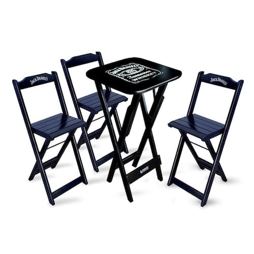 O Conjunto Jack Daniel?s é ideal para bares, restaurantes, estabelecimentos, áreas de lazer e também para sua casa. Em madeira maciça, tornando-os resistentes e duráveis. Seu design permite que esse conjunto seja encaixado em qualquer ambiente, trazendo um toque a mais para seu estabelecimento. Além de sua durabilidade, o que lhe trará conforto para servir seus clientes. Por ser dobrável torna-se mais fácil guardar, manusear e limpar o produto.