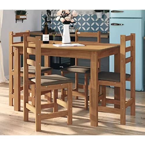 Cadeiras podem serem vendidas Avulsas O Conjunto Mesa Brasil com 4 Cadeiras é a escolha ideal para quem busca beleza e funcionalidade em ambientes compactos. Com estrutura em madeira de Pinus e tampo em MDF com pintura UV e impressão de veio, oferece durabilidade e elegância. As cadeiras com tecido na cor Chocolate garantem conforto, enquanto o acabamento em Carvalho Acetinado traz sofisticação ao espaço.