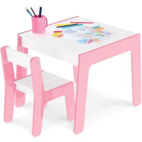 O Conjunto De Mesa + Cadeira Infantil Rosa MDF 990 da Junges é ideal para brincar, desenhar, utilizar para o lanche e muitas outras atividades. O produto é atóxico pois sua pintura é a base d'água. O material é de fácil limpeza, o produto é ecológico e além disso, acompanha um kit montagem que irá facilitar ainda mais! Características: - Conjunto de Mesa + Cadeira Infantil em madeira de MDF, pintura atóxica a base dágua - Material de fácil limpeza, prática e fácil de montar acompanha kit de montagem - Produto super resistente, ecológico, fácil montagem e prática - Cadeirinha indicada para crianças com peso até 40 Kg Especificações Técnicas Marca: Junges Embalagem: Caixa litografada Cor: Rosa Referência: 990 Idade indicada: +24m Dimensões da cadeira: 25x33x46cm Dimensões da mesa: 58x51x46cm Dimensões da embalagem: 59x07x48 cm Peso suportado pela cadeira: 40 Kg Peso do produto: 6,570 kg Certificação: Norma NM 300-1:2202 Ean: 7897858319902