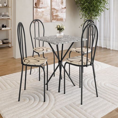Conjunto de Mesa Leia com 4 Cadeiras e Tampo em Granito – Sofisticação e Durabilidade para sua Cozinha ou Espaço Gourmet