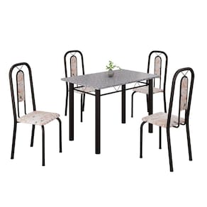 Quer deixar sua casa completa e prática? Uma dica bacana de como transformar o seu lar, deixando-o mais receptivo e bonito? Então você precisa de móveis indispensáveis para deixar seu lar muito mais aconchegante, receptivo e sempre disponível para receber a visita de amigos, familiares e convidados. Você vai se apaixonar por este incrível e moderno Conjunto de Mesa com 4 Cadeiras. Ideal para cozinha, ele é a melhor opção para completar o espaço que você desejar. Aproveite!! Medida da Mesa (A x L x P): 75,8 cm x 100 cm x 60 cm Peso da Mesa: 36,48 kg Mesa suporta até: 10 kg Acabamento da Cadeira/Banco: Pintura Texturizada Acabamento da Mesa: Pintura Texturizada Ambiente Principal: Cozinha Cadeira/Banco estofada: Somente Assento Estofado Cadeira/Banco suporta até: 120 kg codigo_ean: 7900288142603 Complexidade da Montagem: Baixa: pode ser montado por uma pessoa sozinha Cor: Bege / Preto Cor do Produto: Bege / Preto Cor Secundária: Bege De Canto (Canto Alemão): Não Escala de Brilho: Semi-Brilho Espessura do Tampo: 1,5 mm Estrutura do Assento: MDP Formato do Tampo: Retangular Itens Inclusos: 1 Mesa, 4 Cadeiras, Kit Ferragens e Manual de Montagem Linha ou Coleção: Lívia Manual de Montagem e Instalação: https://product-hub-prd.madeiramadeira.com.br/979846/documents/ea79d60f-40a1-4cb9-93b4-0881deac0b8c271885335281740681332521.pdf Marca: Soma Móveis Material da Base da Mesa: Aço Material da Estrutura da Cadeira: Aço Material do Tampo: Granito Medida da Cadeira/Banco (A x L x P): 94 cm x 36 cm x 40 cm Medida do Tampo (L x C x E): 100cm x 60cm x 1,5 cm Mesa Extensível: Não Necessita Montagem: Sim Origem do Produto: Nacional Peso da Cadeira/Banco: 2,28 kg Possui Apoio Para os Pés: Não Quantidade de Cadeiras: 4 Quantidade de Lugares: 04 Recomendações de Uso, Manutenção e Limpeza: Não permitir que molhe os pés da base, usar um pano de tecido macio e seco, evitar detergentes, alvejantes e produtos químicos de limpeza; no tampo usar tecido macio levemente umedecido. Sistema de Montagem: Parafusos