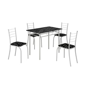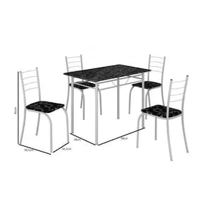 Características: Marca: Teixeira Material: Estrutura em metal e tampo em MDP Itens Inclusos: 1 Base, 1 Tampo e 4 Cadeiras