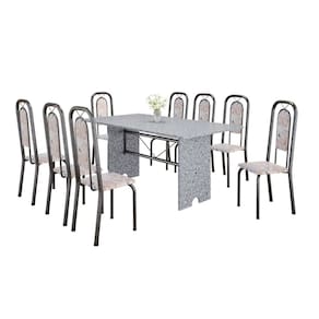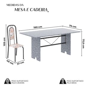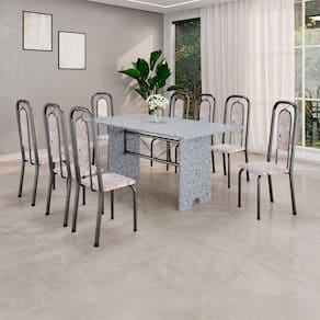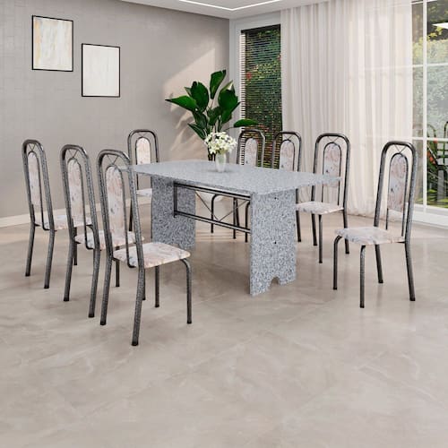 Quer deixar sua casa completa e prática? Uma dica bacana de como transformar o seu lar, deixando-o mais receptivo e bonito? Então você precisa de móveis indispensáveis para deixar seu lar muito mais aconchegante, receptivo e sempre disponível para receber a visita de amigos, familiares e convidados. Você vai se apaixonar por este incrível e moderno Conjunto de Mesa com 8 Cadeiras. Ideal para cozinha, ele é a melhor opção para completar o espaço que você desejar. Aproveite!! Medida da Mesa (A x L x P): 75,8 cm x 180 cm x 75 cm Peso da Mesa: 104,24 kg Mesa suporta até: 10.0000 Acabamento da Cadeira/Banco: Pintura Texturizada Acabamento da Mesa: Pintura Texturizada Ambiente Principal: Cozinha Cadeira/Banco Estofada: Encosto e Assento Estofados Cadeira/Banco estofada: Encosto e Assento Estofados Cadeira/Banco suporta até: 120.0000 codigo_ean: 7900288153159 Complexidade da Montagem: Baixa: pode ser montado por uma pessoa sozinha Cor: Bege/Prata Cor do Produto: Bege/Prata Cor Secundária: Bege De Canto (Canto Alemão): Não Enchimento do Assento: Espuma D-16 Escala de Brilho: Brilhante Espessura do Tampo: 1,5 mm Estrutura do Assento: MDP Formato do Tampo: Retangular Itens Inclusos: 1 Mesa, 8 Cadeiras, Manual de Montagem e Kit Ferragens Linha ou Coleção: Lara Manual de Montagem e Instalação: https://product-hub-prd.madeiramadeira.com.br/483552553/documents/c06b185a-bbbf-4261-a3d8-9cd87ce4746780282374535281744236778593.pdf Marca: Soma Móveis Material da Base da Mesa: Aço Material da Estrutura da Cadeira: Aço Material do Tampo: Granito Medida da Cadeira/Banco (A x L x P): 105 cm x 37 cm x 40 cm Medida do Tampo (L x C x E): 180cm x 75cm x 1,5 cm Mesa Extensível: Não Necessita Montagem: Sim Origem do Produto: Nacional Peso da Cadeira/Banco: 2,7 kg Possui Apoio Para os Pés: Não Possui Suporte Giratório: Não Quantidade de Cadeiras: 8 Quantidade de Lugares: 08 Recomendações de Uso, Manutenção e Limpeza: Não permitir que molhe os pés da base, usar um pano de tecido macio e seco, evitar detergentes, alvejantes e produtos químicos de limpeza; no tampo usar tecido macio levemente umedecido. Revestimento da Cadeira/Banco: Couro Sistema de Montagem: Parafusos Marca: Não Informado