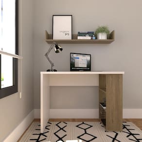 Com um design moderno e funcional, essa mesa oferece espaço amplo para seu laptop, cadernos e canecas de café, além de prateleiras práticas para manter tudo organizado. A superfície de trabalho é resistente e fácil de limpar, perfeita para enfrentar a rotina diária sem perder o charme. Completa o conjunto uma prateleira versátil que combina perfeitamente com a mesa. Feita para exibir seus livros favoritos, plantas decorativas e, claro, aquele troféu especial. Com um acabamento elegante, a prateleira é o toque final que deixa seu espaço com a sua cara. Invista em conforto e estilo com esse conjunto! Acabamento do Tampo: BP Melamínico Acabamento dos Pés: Melamínico Acompanha Manual de Instalação: Sim Ambiente Principal: Escritório Complexidade da Montagem: Alta: deve ser montado por um montador especializado Cor: Branco/Carvalho Mel Cor da Base: Branco Cor do Produto: Branco/Carvalho Mel Cor do Tampo: Branco Cor Interna: Branco Dobrável: Não Escala de Brilho: Fosco Espessura do Tampo: 25 mm Formato: Retangular Itens Inclusos: Mesa, Prateleira e Ferragens e Manual de Montagem Linha ou Coleção: Kit Cubos Manual de Montagem e Instalação: https://cdn2.madeiramadeira.com.br/atributo/bramov-moveis/2082999-5228-17193273754745.pdf Material da Estrutura: MDF/MDP Material do Tampo: MDF/MDP Material dos Pés: MDP Material Principal: MDF/MDP Necessita Montagem: Sim Origem do Produto: Nacional Pés com Regulagem de Altura: Não Pés Reguláveis: Não Peso: 20 kg Peso Máximo por Prateleira: 3 kg Possui Painel: Não Possui Painel de TV: Não Possui Passa Cabos: Não Possui Porta Objetos: Não Possui Portas: Não Possui Prateleiras: Sim Possui suporte para CPU: Não Possui Suporte para Teclado: Não Possui Vidro: Não Quantidade de Prateleiras: 04 Prateleiras Recomendações de Uso, Manutenção e Limpeza: Limpar apenas com pano macio levemente umidecido. Sapatas Niveladoras: Sim Sistema de Montagem: Cavilha, parafuso e minifix Suporta Até (kg): 35 kg