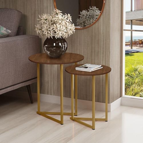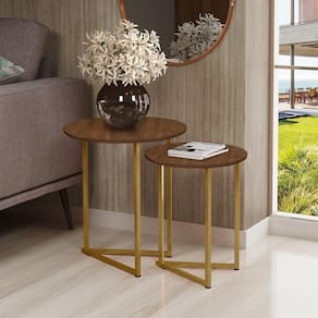 Jogo de Mesa Lateral e Apoio Jade Base Aço Cobre estilo industrial tampo MDF DTH Imports