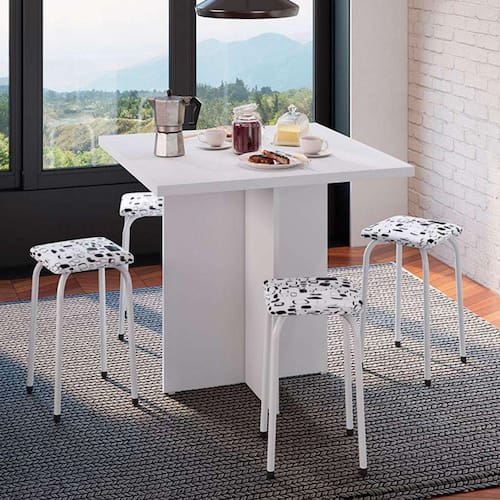 que tal o conjunto de mesa de cozinha com bancos verona?na hora de receber visitas para refeições em casa você não quer se preocupar com mais nada além do cardápio, certo? graças ao conjunto de mesa de cozinha verona, você terá certeza de que seus convidados se sentirão bem cionados enquanto batem papo em um dos 4 bancos aconchegantes ou desfrutam dos pratos dispostos pelo tampo. com design simples e cores harmônicas, esse kit vai ajudar a tornar o seu cantinho gourmet um espaço único que será palco para ótimos momentos.