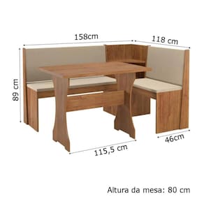 - Dimensões do Produto (LarguraXProfundidadeXAltura) Mesa: 111,5x75x80cm / Canto Maior: 158x46x89cm / Canto Menor: 118x46x89;