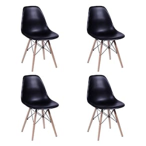 Conjunto de Mesa de Jantar Eames Eiffel Redonda 90 cm Tampo de Madeira Preto com 4 Cadeiras Pretas O Jogo de Mesa 4 Cadeiras Eames Eiffel se destaca pelo design moderno e sofisticado. A Cadeira Eames é confeccionada em policarbonato, sua base é em Madeira maciça, o que confere total resistência e conforto, o tampo da mesa é confeccionado em MDF com pintura impermeável garantindo melhor durabilidade ao produto, sua base é em Madeira maciça. O Jogo de Mesa 4 Cadeiras Eames Eiffel da vida ao ambiente além de combinar com todos os tipos e cores de móveis.Tipo: ConjuntoModelo: Eames EiffelDimensões do Produto:- CadeiraCor: Preto Altura: 85cm Largura: 47cm Profundidade: 50cm Assento x ChÃo: 45cm Contém: 4 cadeiras Peso máximo suportado: 120kg- MesaCor: Preto Altura: 76cm Di âmetro: 90 cm Obs: Imagens Meramente Ilustrativa