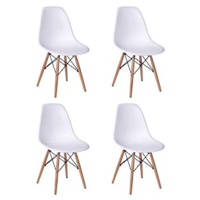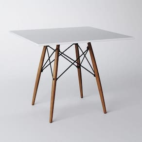 Conjunto de Mesa de Jantar Eames Eiffel Quadrada 90cm Tampo de Madeira Branco com 4 Cadeiras Brancas