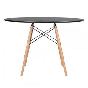 Conjunto de Mesa de Jantar Eames Eiffel Redonda 110cm Tampo de Madeira Preto com 4 Cadeiras Brancas