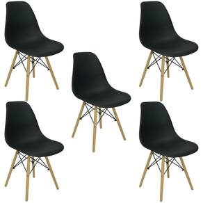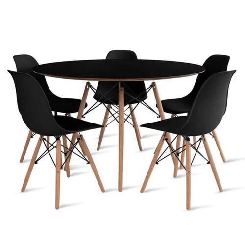 Conjunto de Mesa de Jantar Eames Eiffel Redonda 110cm Tampo de Madeira Preto com 5 Cadeiras Pretas