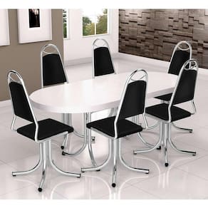 que tal o conjunto de mesa mascavo e cadeiras ashlee?seja no café, almoço ou jantar, reunir a família é sempre uma delícia, né? e, para deixar esses momentos ainda mais cômodos e agradáveis, nada hor do que o conjunto mascavo e ashlee! enquanto a mesa dispõe de bom espaço de tampo para você organizar lugares americanos, pratos e tudo o que é necessário em cada situação, as seis cadeiras ofereceomodidade ideal e deixam todo mundo mais à vontade para curtir bem as receitas que só você sabe fazer. o kit ainda possui um visual moderno, que deixa em destaque o acabamento cromado e a coloração sóbria, tudo para dar um charme extra à decoração. ah, notou que a mesa é do tipo extensível? É ótima para se adaptar ao seu dia a dia e receber os amigos em dias especiais. sua casa merece ;)