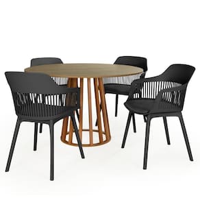 Conjunto Sala de Jantar 4 Lugares em Madeira Maciça Mesa Redonda 1,0M e 4 Cadeiras Moveis Mix