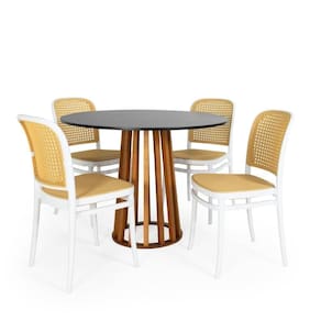 Conjunto Sala de Jantar 4 Lugares Mesa Redonda 1,0m e 4 Cadeiras Moveis Mix