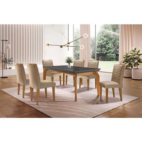 que tal o conjunto de mesa e cadeiras turquesa? conquistar sua sala de jantar dos sonhos vai ficar fácil com o conjunto turquesa. completo para o dia a dia, o kit une mesa espaçosa e cadeiras aconchegantes, tudo para promover o bem-estar necessário às refeições em família ou com amigos. além de muita funcionalidade, você também leva um design elegante e contemporâneo para o seu cantinho, graças à valorização do tom neutro e do acabamento amadeirado. ah, notou que a mesa tem aplicação de vidro no tampo? um charme extra para sua casa que ainda facilita a limpeza :) Marca: Modern Ean: 7908560504583