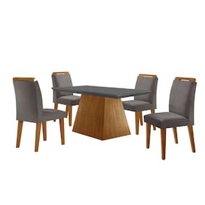 que tal o conjunto de mesa luna com cadeiras athenas? conquistar sua sala de jantar dos sonhos vai ficar fácil com o conjunto luna e athenas. completo para o dia a dia, o kit une mesa espaçosa e cadeiras aconchegantes, tudo para promover o bem-estar necessário às refeições em família ou com amigos. além de muita funcionalidade, você também leva um design elegante e contemporâneo para o seu cantinho, graças à valorização do tom neutro e do acabamento amadeirado. ah, notou que a mesa tem aplicação de vidro no tampo? um charme extra para sua casa que ainda facilita a limpeza :) Marca: Modern