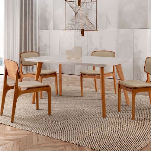 que tal o conjunto de mesa e cadeiras de jantar prada? o lar-style dos sonhos precisa cumprir alguns requisitos: aconchego, acolhimento, boa decoração… para a sala de jantar perfeita, você encontra tudo isso no conjunto prada! com uma mesa estruturada em madeira, você conseguirá dispor todo os pratos e utensílios de servir, enquanto as 4 cadeiras que também são estruturadas em madeira e têm enchimento em espuma deixarão todos confortáveis. unindo o acabamento amadeirado coor neutra do revestimento io, as peças também deixarão sua sala de jantar digna de todos os elogios. tudo lindo, como você e sua casa merecem :) Marca: Modern