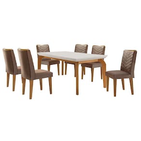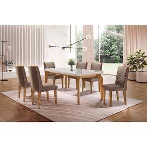 que tal o conjunto de mesa e cadeiras turquesa? conquistar sua sala de jantar dos sonhos vai ficar fácil com o conjunto turquesa. completo para o dia a dia, o kit une mesa espaçosa e cadeiras aconchegantes, tudo para promover o bem-estar necessário às refeições em família ou com amigos. além de muita funcionalidade, você também leva um design elegante e contemporâneo para o seu cantinho, graças à valorização do tom neutro e do acabamento amadeirado. ah, notou que a mesa tem aplicação de vidro no tampo? um charme extra para sua casa que ainda facilita a limpeza :) Marca: Modern Ean: 7908560504590