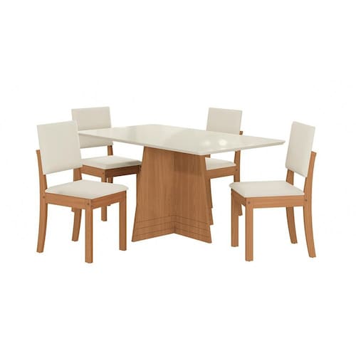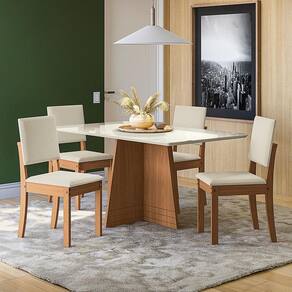 Que tal o Conjunto de Mesa Lotus e Cadeiras Luna? Sua sala de jantar completa e receptiva pede o Conjunto Lotus e Luna na composição. Enquanto a mesa tem estrutura em MDP, promovendo a estabilidade necessária ao uso diário, as cadeiras contam com enchimento em espuma e revestimento em tecido macio - assim a comodidade é garantida desde o cafezinho da manhã até o jantar especial com os amigos. De visual que cria um lar-style sofisticado, as peças têm cor neutra e acabamento amadeirado, o combo perfeito para combinar com os outros móveis do seu cantinho.