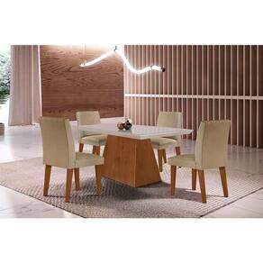 que tal o conjunto de mesa luna com cadeiras grécia? conquistar sua sala de jantar dos sonhos vai ficar fácil com o conjunto luna e grécia. completo para o dia a dia, o kit une mesa espaçosa e cadeiras aconchegantes, tudo para promover o bem-estar necessário às refeições em família ou com amigos. além de muita funcionalidade, você também leva um design elegante e contemporâneo para o seu cantinho, graças à valorização do tom neutro e do acabamento amadeirado. ah, notou que a mesa tem aplicação de vidro no tampo? um charme extra para sua casa que ainda facilita a limpeza :) Marca: Modern Ean: 7908560531237
