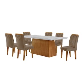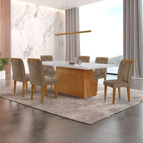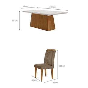 que tal o conjunto de mesa luna com cadeiras italia? conquistar sua sala de jantar dos sonhos vai ficar fácil com o conjunto luna e italia. completo para o dia a dia, o kit une mesa espaçosa e cadeiras aconchegantes, tudo para promover o bem-estar necessário às refeições em família ou com amigos. além de muita funcionalidade, você também leva um design elegante e contemporâneo para o seu cantinho, graças à valorização do tom neutro e do acabamento amadeirado. ah, notou que a mesa tem aplicação de vidro no tampo? um charme extra para sua casa que ainda facilita a limpeza :) Marca: Modern