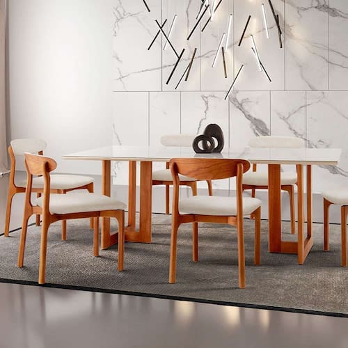 que tal o conjunto de mesa talia com cadeiras italia? o lar-style dos sonhos precisa cumprir alguns requisitos: aconchego, acolhimento, boa decoração… para a sala de jantar perfeita, você encontra tudo isso no conjunto talia e italia! com uma mesa ampla cujo tampo em madeira recebe aplicação de vidro, você conseguirá dispor todo os pratos e utensílios de servir, enquanto as 6 cadeiras que também são estruturadas em madeira e têm enchimento em espuma deixarão todos confortáveis. unindo o acabamento amadeirado coor neutra do revestimento io, as peças também deixarão sua sala de jantar digna de todos os elogios. tudo lindo, como você e sua casa merecem :) Marca: Modern
