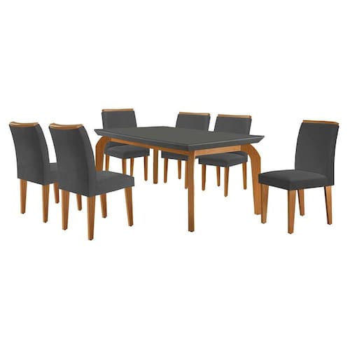 que tal o conjunto de mesa turquesa com cadeiras luanda? conquistar sua sala de jantar dos sonhos vai ficar fácil com o conjunto turquesa e luanda. completo para o dia a dia, o kit une mesa espaçosa e cadeiras aconchegantes, tudo para promover o bem-estar necessário às refeições em família ou com amigos. além de muita funcionalidade, você também leva um design elegante e contemporâneo para o seu cantinho, graças à valorização do tom neutro e do acabamento amadeirado. ah, notou que a mesa tem aplicação de vidro no tampo? um charme extra para sua casa que ainda facilita a limpeza :) Marca: Modern Ean: 7908560535679
