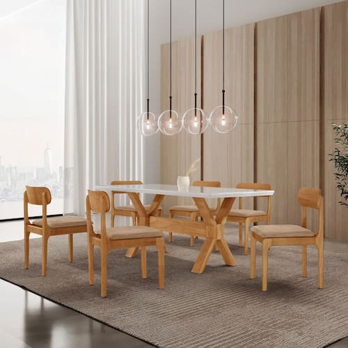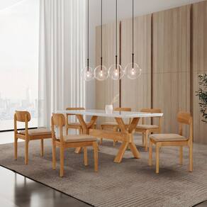 A Cadeira Bellini complementa o conjunto com conforto e sofisticação. Produzida em madeira maciça e com assento estofado, oferece estabilidade e uma experiência acolhedora à mesa. Suas linhas suaves e proporções equilibradas reforçam o estilo contemporâneo, tornando o conjunto uma escolha ideal para quem busca elegância e conforto. Medida da Mesa (A x L x P): 80cm x 180cm x 90cm Peso da Mesa: 57 kg Mesa suporta até: 35 kg Acabamento da Cadeira/Banco: Pintura Acompanha Manual de Instalação: Não Almofada do assento: Fixa Ambiente Principal: Sala de Jantar Cadeira/Banco Estofada: Somente Assento Estofado Cadeira/Banco estofada: Somente Assento Estofado Cadeira/Banco suporta até: 140 kg Cadeira/Banco Suporta Até: 140.0000 codigo_ean: 7900288352941 Complexidade da Montagem: Média: pode ser montado por mais de uma pessoa e/ou necessite de maior conhecimento para montagem Configuração do Conjunto: Mesa com Cadeiras Cor: Linho Palha/ Imbuia Natural / Cinamomo Imbuia/ Laq Cor do Produto: Linho Palha/ Imbuia Natural / Cinamomo Imbuia/ Laq Cor do Tampo: Off White Cor Flex: Não Cor Secundária: Marrom De Canto (Canto Alemão): Não Design da Base: Em X Escala de Brilho: Semi-Brilho Espessura do Tampo: 40 mm Estrutura do Assento: Madeira Maciça Estrutura do Encosto: Madeira Maciça Formato do Tampo: Retangular Informações Complementares: As cadeiras são entregues totalmente montadas e prontas para uso, enquanto a mesa chega pré-montada, facilitando a instalação e garantindo praticidade. Itens Inclusos: 1 Mesa, 6 Cadeiras e Kit Ferragens Linha ou Coleção: Bellini Manual de Montagem e Instalação: https://product-hub-prd.madeiramadeira.com.br/585412464/documents/10191f11-63da-4ffa-9588-f7d0fa0a424c3437902584417731621722078.pdf Marca: Mobilare Material da Base da Mesa: MDF Laminado/Madeira Maciça Material da Estrutura da Cadeira: Madeira Maciça Material do Tampo: Madeira/MDF Material Principal: Madeira Maciça/MDF Material Principal das Cadeiras/Bancos: Madeira Maciça Medida da Cadeira/Banco (A x L x P): 83,5x45x51 Medida do Tampo (L x C x E): 180cm x 90cm x 4cm Mesa Dobrável: Não Mesa Extensível: Não Montagem Flex: Não Necessita Montagem: Sim Origem do Produto: Nacional Peso da Cadeira/Banco: 7,1 kg Possui Apoio para Braços: Não Possui Apoio Para os Pés: Não Possui Prateleiras: Não Possui Suporte Giratório: Não Possui Vidro: Sim Quantidade de Cadeiras: 6 Quantidade de Lugares: 06 Recomendações de Uso, Manutenção e Limpeza: Limpar com pano seco. Sistema de Montagem: Parafusos Tipo de Assento: Fixo Tipo de Encosto: Fixo