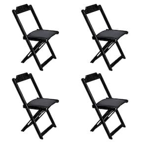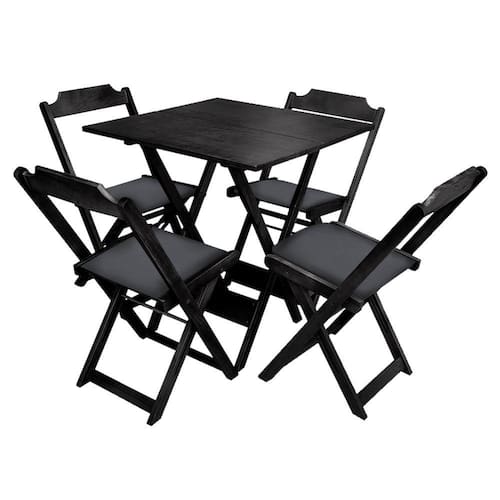 Conjunto de Mesa Dobravel de Madeira 70x70 com 4 Cadeiras Preto Estofado Preto