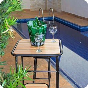 Fácil montagem, apertar os fixadores do tampão da mesa e assentos da banqueta
