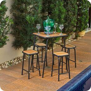 Conteúdo do Kit : 1 Mesa e 4 Bancos Material da Estrutura : Aço Material do assento: Madeira Cor/acabamento : Preto Pintura Eletrostática Epoxi Estrutura da banqueta e mesa: Tubo Redondo Medida do tubo: 7/8