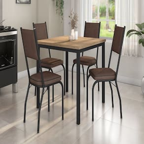 O Conjunto Sala de Jantar Mesa Adriana foi desenvolvido para trazer ainda mais beleza e conforto para o seu lar. Possui tampo resistente e de fácil limpeza, e as cadeiras são revestidas em tecido material sintético de fácil limpeza também. Ainda conta com base da mesa e cadeiras de aço, garantindo resistência e durabilidade. Medida da Mesa (A x L x P): 78x90x90 Peso da Mesa: 17,01 kg Mesa suporta até: 60.0000 Acabamento da Cadeira/Banco: Pintura Epóxi Acabamento da Mesa: Pintura Epóxi Almofada do assento: Fixa Almofada do encosto: Fixa Ambiente Principal: Cozinha Cadeira/Banco Estofada: Encosto e Assento Estofados Cadeira/Banco estofada: Encosto e Assento Estofados Cadeira/Banco suporta até: 120.0000 codigo_ean: 7900288132772 Complexidade da Montagem: Média: pode ser montado por mais de uma pessoa e/ou necessite de maior conhecimento para montagem Configuração do Conjunto: Mesa com Cadeiras Cor: Preto/Imbuia/Demolição Cor da Base: Preto Cor do Produto: Preto/Imbuia/Demolição Cor Flex: Não De Canto (Canto Alemão): Não Escala de Brilho: Semi-Fosco Espessura do Tampo: 30 mm Estrutura do Assento: MDP Formato do Tampo: Quadrado Itens Inclusos: 1 Mesa, 4 Cadeiras, Manual de Montagem e Kit Ferragens Manual de Montagem e Instalação: https://product-hub-prd.madeiramadeira.com.br/852133217/documents/5e9b4d4f-f975-456a-aeac-234beabd09662877476527317455447223532.pdf Marca: Artefamol Material da Base da Mesa: Aço Carbono Material da Estrutura da Cadeira: Aço Carbono Material do Tampo: MDP Material Principal: Aço Material Principal das Cadeiras/Bancos: Aço Carbono Medida da Cadeira/Banco (A x L x P): 90x34x43 Medida do Tampo (L x C x E): 90x90x3 Mesa Dobrável: Não Mesa Extensível: Não Necessita Montagem: Sim Origem do Produto: Nacional Peso da Cadeira/Banco: 3,18 kg Possui Apoio para Braços: Não Possui Apoio Para os Pés: Não Possui Prateleiras: Não Possui Suporte Giratório: Não Possui Vidro: Não Quantidade de Cadeiras: 4 Quantidade de Lugares: 04 Recomendações de Uso, Manutenção e Limpeza: Para manter seu móvel novo por muito mais tempo, evite locais úmidos, mantenha-o distante de líquidos e de fontes de calor. Evite a exposição prolongada ao sol. Para limpá-lo com segurança utilize uma flanela seca sem produtos abrasivos e nem lustra móveis. Sistema de Montagem: Pafusos, Sapatas, Arruelas Tipo de Assento: Fixo Tipo de Encosto: Fixo