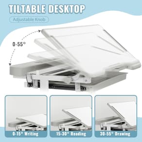 - Mesa inclinável: nossa mesa de estudante possui uma grande mesa de inclinação de ângulo ajustável que pode ser infinitamente ajustada de 0 a 55° para encontrar o ângulo perfeito para escrever, ler ou desenhar; o suporte de leitura de ângulo ajustável permite que as crianças liberem as mãos enquanto aprendem